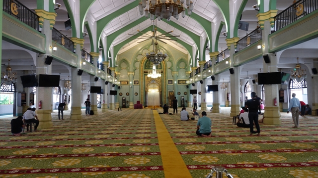 Después de comer cogimos el metro hasta las paradas de metro Lavander o Bugis, y nos fuimos a Kampong Glam, el barrio musulmán, lleno de tiendas, notas enseguida el cambio porque las mujeres se cubren la cabeza con el hiyab .