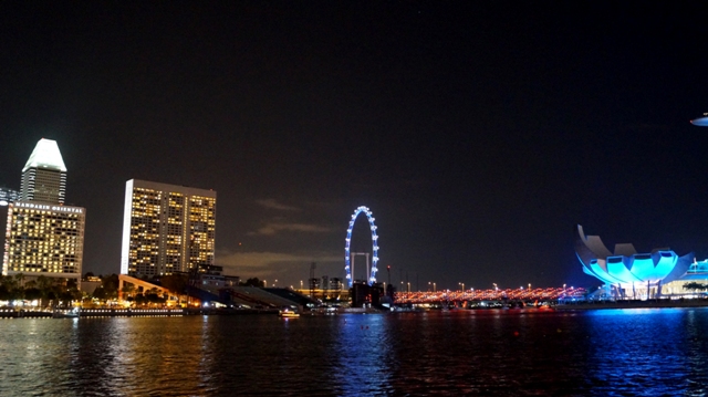 Aprovechamos a coger uno de los barcos eléctricos que salen del muelle de Clarque Quay para navegar por la bahía mientras va anocheciendo y se van encendiendo las luces de la ciudad, es una preciosidad, además de la extrema limpieza y tranquilidad que se respira.
