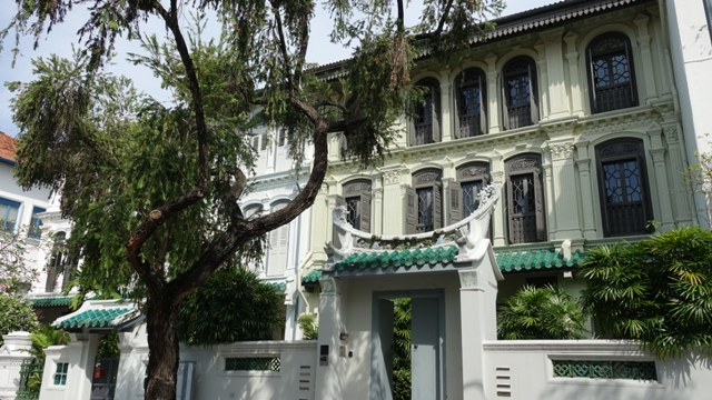 En la misma zona hay situado un barrio de elegantes casas, datadas de entre 1901 y 1925, es Emerald Hill justo al lado de la zona comercial, está calle con árboles de frangipani, con viviendas muy cuidadas y bien reformadas, que deduzco deben ser de personas pudientes, pues están en pleno centro y con las reformas que tenían dan la impresión de ser bastante caras, es un oasis en pleno centro, se respira tranquilidad por todos sus rincones, una situación ideal para vivir, pues en menos de cien metros pasas del relax al bullicio de los centros comerciales.