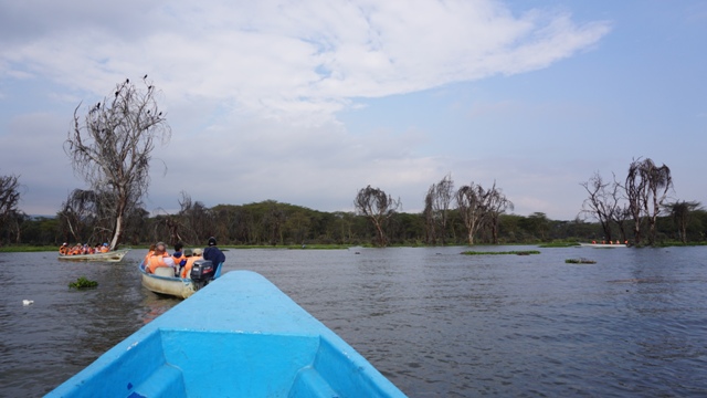 Por fin llegamos al lago Naivasha, montaron la cocina y unas sillas en círculo, para prepararnos la comida, mientras tanto nosotros investigábamos la zona, el paisaje es impresionante, con arboles inundados en el lago y con muchísima fauna alrededor, barabus, monos, y una inmensa variedad de aves.