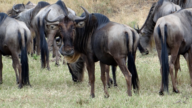 Después de desayunar continuamos con el safari, viendo grandes manadas de elefantes, jirafas, impalas, y cuando el conductor le pareció fuimos siguiendo la migración acercándonos al río donde los esperaban los cocodrilos, buitres y un montón de 4×4 con turistas, cuando parecía que iban a cruzar, llegaron varios 4×4 con turistas chinos, cruzando por medio de la migración y poniéndose justo delante cotandoles el paso, cosa que provocó que los ñus se asustaran y dieran media vuelta, al final conté 45 jeeps 4×4 amontonados al lado del río moviéndose para coger el mejor sitio, como los ñus se asustaron y dieron la vuelta, optamos por ir a comer, fue un poco deprimente ver lo que hacemos los turistas por una foto.