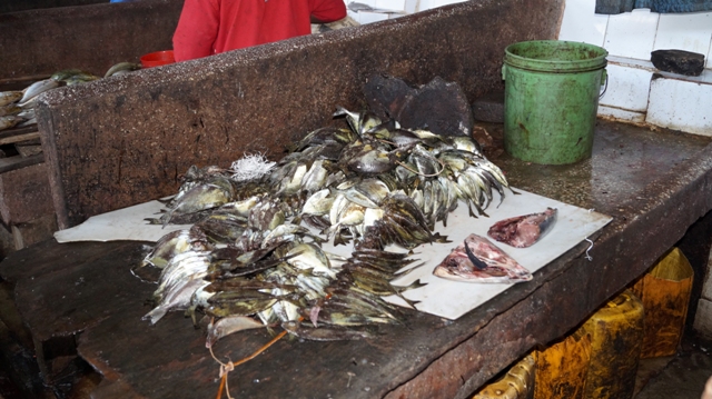 Es un agradable paseo, viendo los pescadores llegar, rebaños de vacas que están en la playa, nos hinchamos de hacer fotos y vídeo con los colores turquesa del mar, de repente se puso el cielo gris y nos pilló un chaparrón tropical, suerte que nos pudimos refugiar en un bar cercano, pasado el cuarto de hora critico seguimos con el paseo, durante el camino hay tiendas donde también se puede hacer más compras.