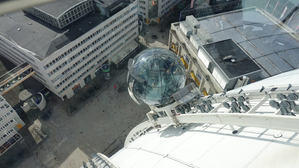 La subida es lenta pero da bastante impresión al ser todo de cristal, una vez arriba, hace una parada de unos minutos para que puedas hacer todas las fotos y vídeo que te apetezca para luego volver a bajar.