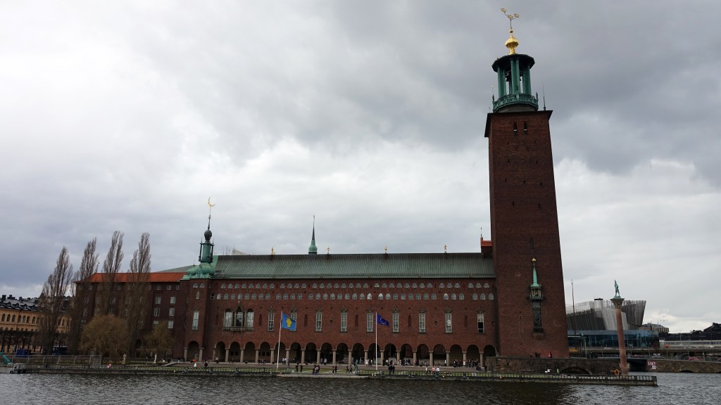 La mañana era gris y hacía una ligera llovizna, nos dirigimos al ayuntamiento que está a unos 15 minutos del hotel, al llegar compramos las entradas, 110 SEK, de momento, al ser Abril, solo era visita del ayuntamiento, la torre solo se puede visitar a partir de Mayo.