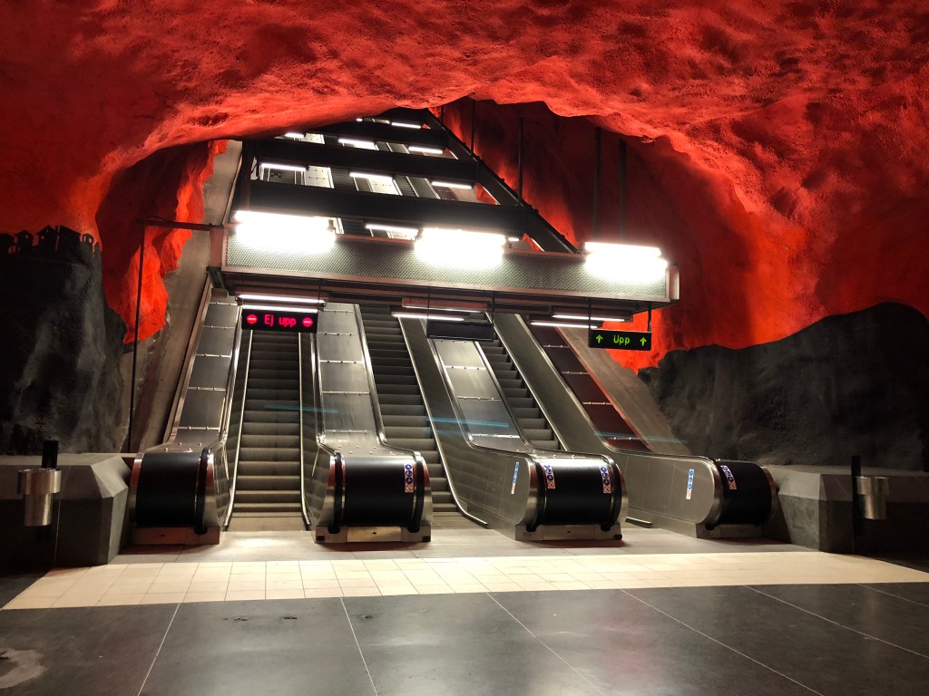 Las más bonitas e interesantes son la T- Centralen con pinturas de doce artistas, la Kungsträdgarden de la linea azul con esculturas, la Solna Centrum de color rojo intenso, La Stadion de la linea roja con señales de colores y un gran arco iris, la Tekniska högskolan de la linea roja con los cuatro elementos y la estación de Rådhuset que simula una cueva, con una gigantesca columna que parece soporte de toda la estación.