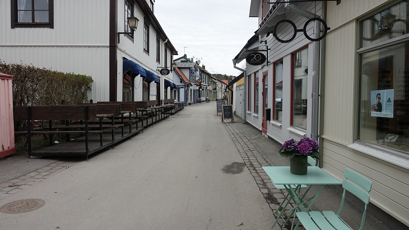 Al llegar a Sigtuna, se había nublado y hacia un aire bastante fresco, la población no tiene perdida, es una calle principal, la más antigua de Suecia «Stora gatan».
