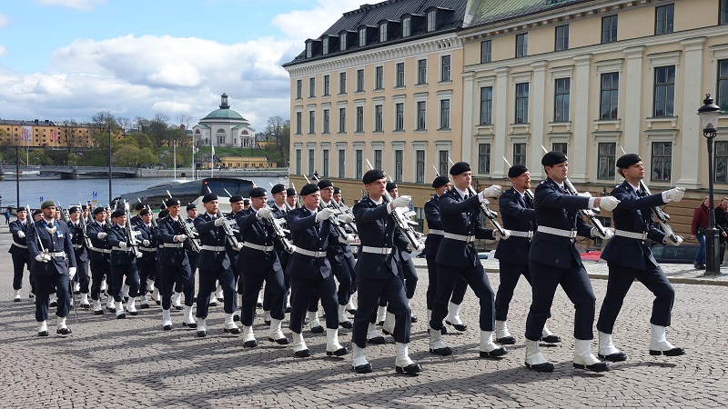 A unos cinco minutos se encuentra el El Palacio Real o Kungliga Slottet, el más grande de la monarquía sueca, de momento lo visitamos solo por fuera y como eran las 12:15h. vimos el cambio de guardia, menos mal que el día poco a poco iba mejorando. Por dentro lo dejamos para el último día de nuestro viaje.