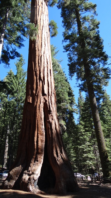 En la subida primero nos encontramos con el Fallen Monarch, con el solterón y las tres Gracias, la más grande Grizzly Giant con 2500 años de edad y 9 metros de diámetro en su base, la California Tunnel Tree que es la única que esta todavía viva con un túnel artificial en su base, la Clothespin Tree. que tiene un túnel natural provocado por varios incendios y un largo etc. de sequoias.