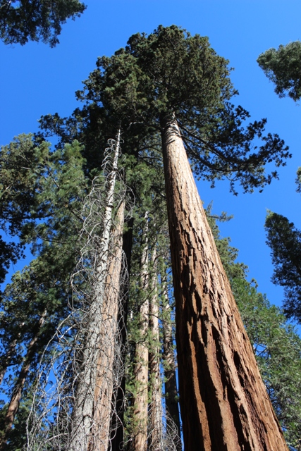Es impresionante ver esas moles milenarias, rodeadas de pinos gigantes. En el recorrido de arriba, a mitad del camino nos encontramos con un coyote cazando una ardilla, que nos dio buen susto, pues no teníamos claro al principio si era un coyote o un lobo, porque estaba detrás de unos matorrales y solo oíamos los gritos de la pobre ardilla.