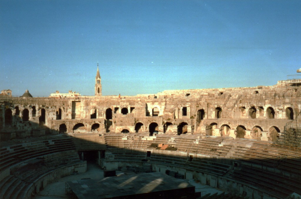 Descubrimos que esta ciudad fue una importante colonia del Imperio romano, tiene varios monumentos muy bien conservados de la época Romana, visitamos la Arena de que es un anfiteatro de dos plantas el cual todavía lo utilizan para celebrar conciertos y corridas de toros.