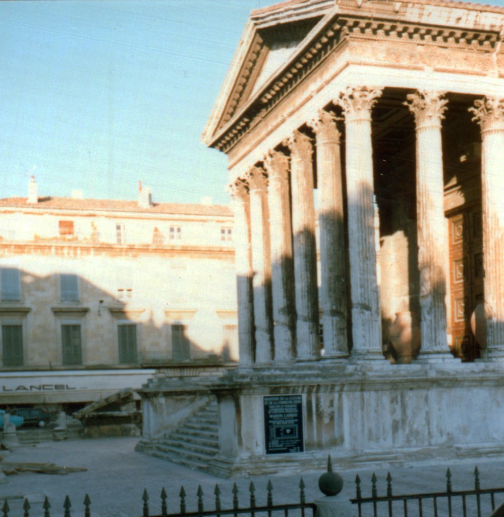 También visitamos el templo Maison Carrée hecho de caliza blanca y el acueducto de tres niveles del puente del Gard , ambos de unos 2000 años de antigüedad, fue una ciudad que nos sorprendió bastante, supongo que al no ser parte de nuestra ruta, no teníamos ni idea de sus monumentos, pese al enfado de la rotura del coche, fue una agradable vista inesperada .