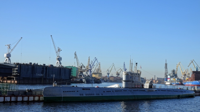 Visitamos una iglesia cercana al hotel para empezar a hacer boca, situada justo frente a río Nevá, llamada Tsercov Uspeniya, al entrar pudimos ver a los fieles situados de pie rezando, mientras el cura hacia sus plegarias en un lateral de la capilla. Casualmente frente a la iglesia, en la orilla del río había un pequeño astillero con un submarino.