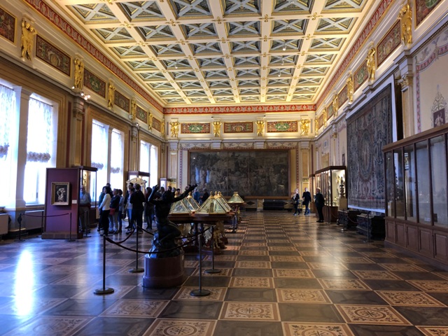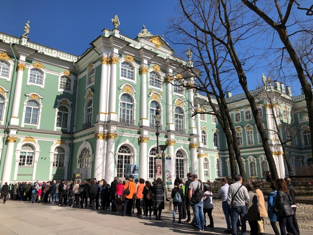 Aproximadamente a las diez de la mañana, nos dirigimos al museo del Hermitage, uno de los mayores museos de antigüedades y pinacotecas del mundo, el complejo está formado por seis edificios, entre ellos el antiguo Palacio de invierno de los zares, el museo estaba situado a la otra orilla del río de donde teníamos el hotel.