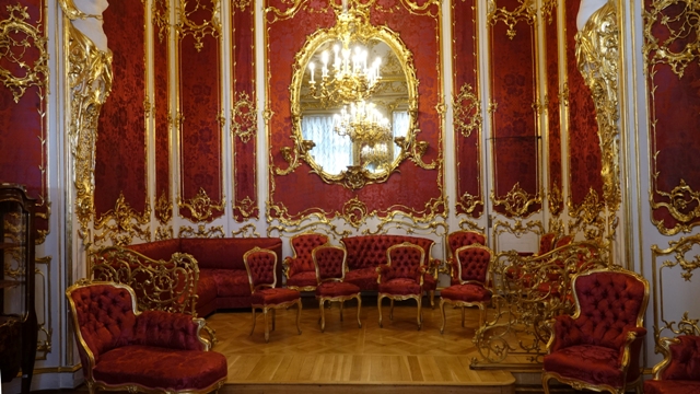 El Palacio es muy al estilo francés imitando a los de Versalles, que era la referencia en esa época, los salones están recargados de tallados y molduras cubiertos de pan de oro con decenas de lamparas de cristal espectaculares. Durante la visita nos hicieron ir relativamente rápidos pues aquel día habían bastantes visitantes, incluso en alguna de las salas más pequeñas no dejaban ni hacer fotos para que no interrumpiéramos la circulación.