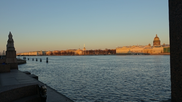 Seguimos por la otra orilla por la calle English Embankment en dirección al Museo del Hermitage, al ser primavera el sol estaba bastante bajo dando un color precioso a los palacios que nos encontrábamos por el camino.