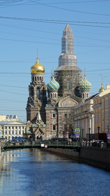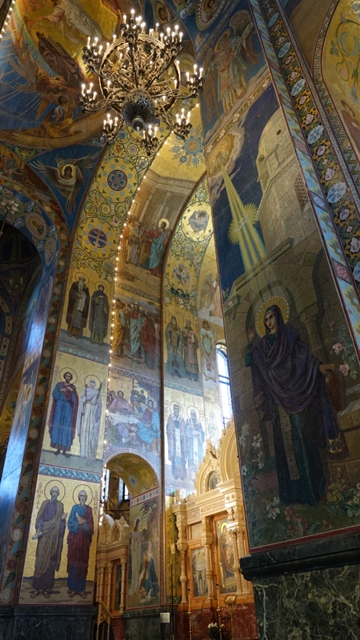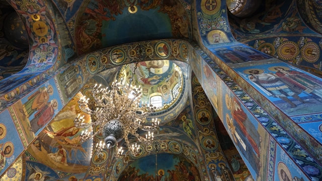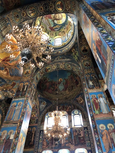 Como este día teníamos el trayecto de tren diurno a Moscú, disponíamos de toda la mañana para pasear un poco más por la ciudad, así que nos dirigimos andando hacia la Catedral de la sangre derramada para visitarla por dentro.