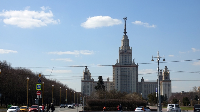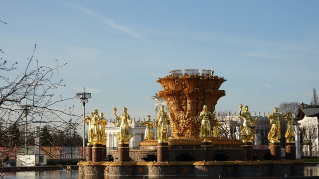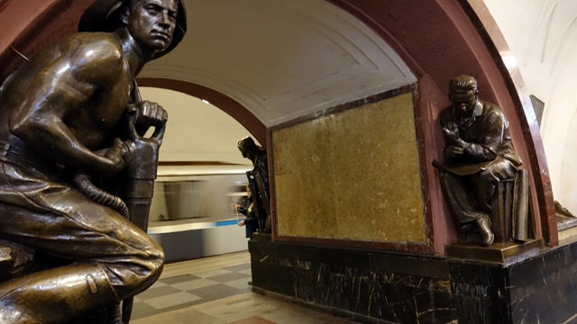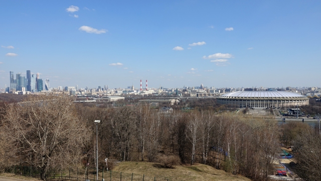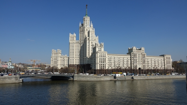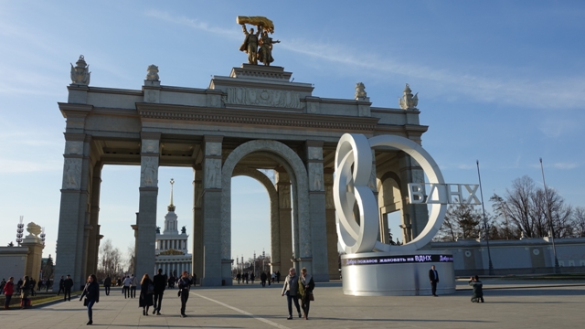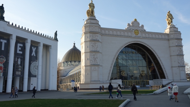 Cogimos el metro hasta la parada de Kutuzovskaya, aunque la más cercana al parque es Park Pobedy, pero como había que hacer transbordo decidimos bajar en la anterior y pasear un rato viendo los edificios de la época soviética y sus entorno.