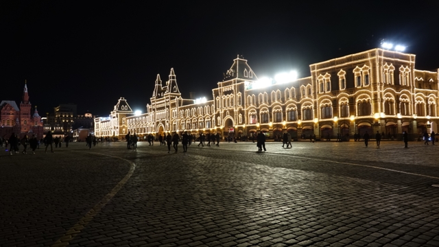 La plaza roja es igualmente impresionante, con el Kremlin y la tumba de Lenin en un lateral, que por cierto estaba cerrada, la catedral de San Basilio en otro, el centro comercial Gum frente al Kremlin y el Museo Estatal de Historia en el otro extremo.