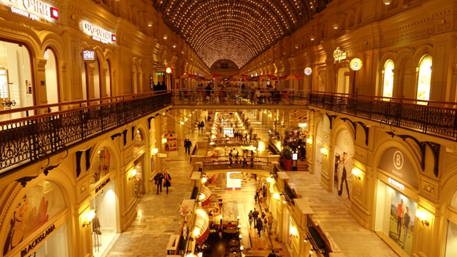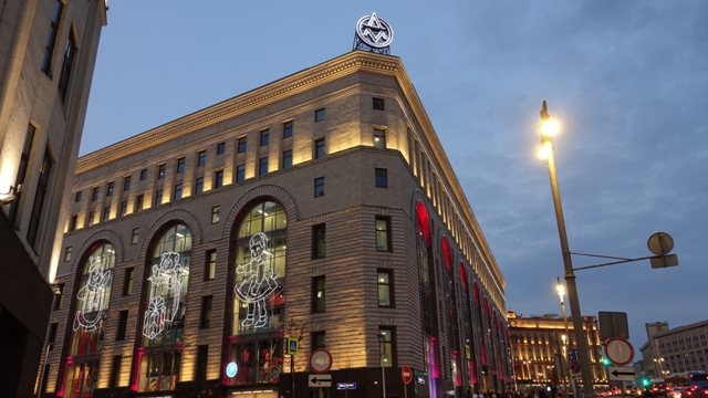 Después de cenar nos acercamos a la calle Tverskaya St, 14, donde hay un famoso supermercado dentro de un palacete para verlo y hacer unas fotos, se llama Eliseyevskiy, es muy curioso estar dentro de un edificio tan elegante y que sea un supermercado de 24 horas.