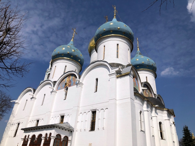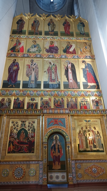 Visitamos Catedral de la Natividad de la Virgen, con sus interiores repletos de iconos y sus bonitas cúpulas de color azul con estrellas doradas.
