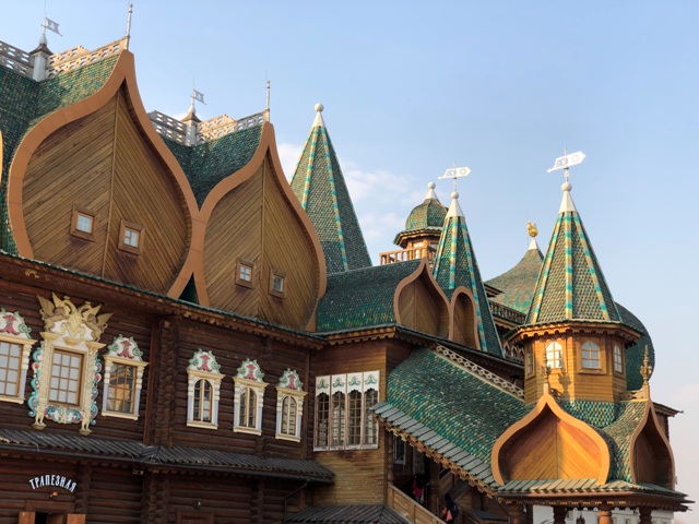 De regreso a Moscú, tomamos el metro hasta la estación de nombre Kashirskaya, para llegar a la entrada sur del parque Kolomenskoye, donde paseamos desde el sur hasta el norte, es una maravilla, con varias iglesias, templos y una reconstrucción del palacio de madera del palacio del Zar Alexey Mihailovich, el padre de Pedro I.