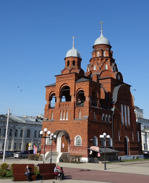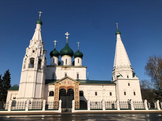 Fuimos hacia la plaza Sovetskaya Ploshchad o plaza Sovietskaia, en centro de la ciudad, allí pudimos ver la Iglesia del profeta Elias, financiada por los hermanos Skripin que comerciaban con joyas y perlas. En la misma plaza hay un par de edificios de la época soviética.