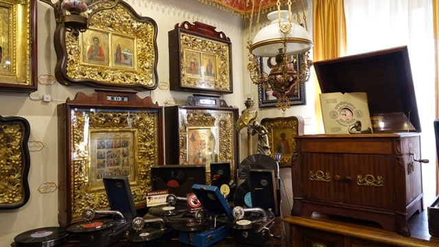 Nos desplazamos hasta el Museo de la Música y el Tiempo, una casia de ladrillo situada a orillas del Volga, creada a principios de los años 90 por el ilusionista John Mostoslavskim, según nos contaron, comenzó a recoger y coleccionar campanas, posteriormente relojes, variedad de instrumentos musicales, fonógrafos, gramófonos y miles de planchas de hierro, es una visita interesante y entretenida.