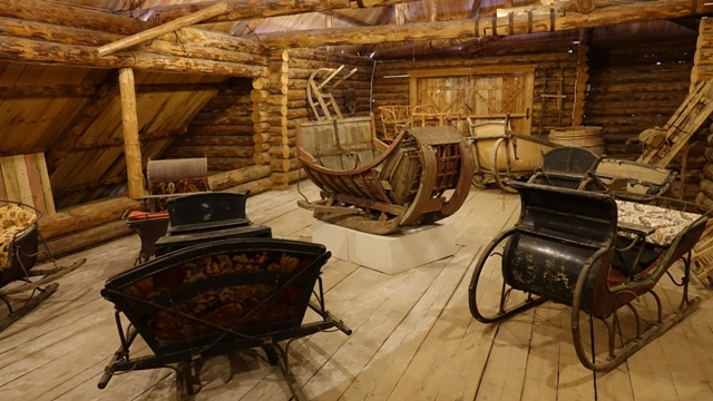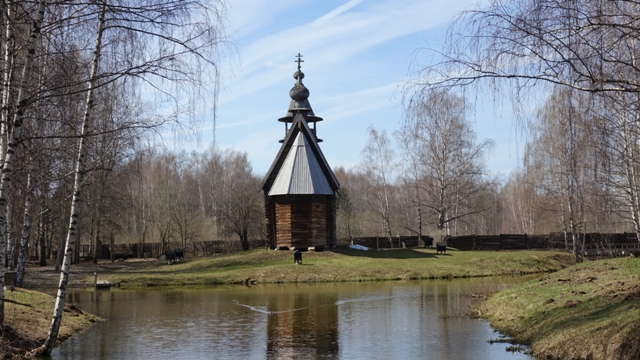 Al salir fuimos al Museo de Arquitectura de madera, situado en una preciosa zona boscosa, donde han reunido varias construcciones de madera de pueblos próximos, iglesias, isbas, «bania» (baños rusos), una de las más bonitas es la iglesia de la Virgen del pueblo de Jolm construida en 1552, también la isba de Erchov, del siglo XIX. Al ser temporada baja estábamos completamente solos, con nuestra guía y el guía local que nos hizo unas extensas explicaciones de las varias construcciones y de sus interiores.