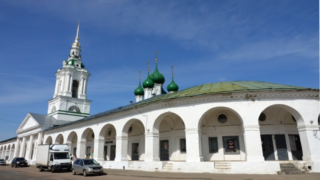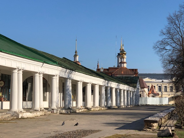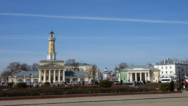 Según nos contó la guía cuando planeaban la distribución de las calles de Kostromá, Catalina II soltó su abanico que cayó abriéndose y así las calles de la ciudad van divergiéndose en rayos a muchas direcciones desde la plaza central, a modo de un abanico.