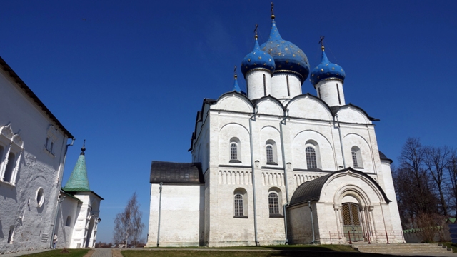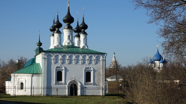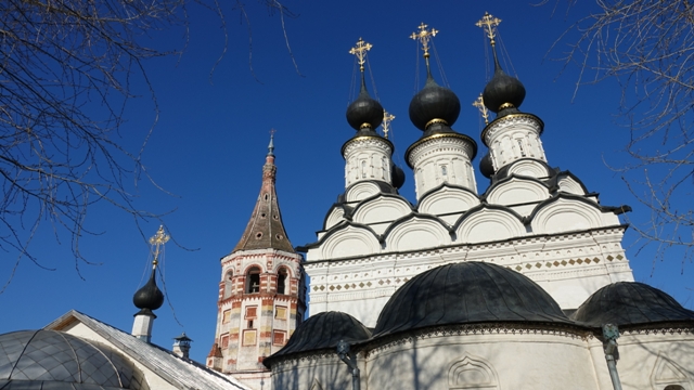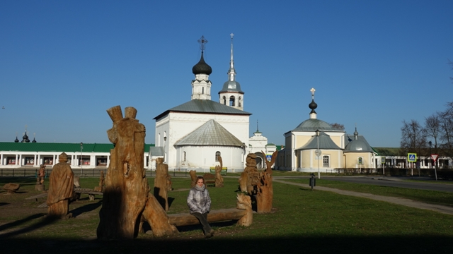 Llegamos a Suzdal a la hora de cenar, justo en la puesta de sol, la población es una maravilla, situada a orillas del río Kamenka, con sus pequeñas casas de madera de múltiples colores, declarada patrimonio de la humanidad por la UNESCO en 1992, actualmente la ciudad es un importante centro turístico, gracias al gran número de ejemplos de antigua arquitectura rusa, sobretodo la mayoría iglesias y monasterios, la verdad es que parece que la mitad de sus edificios sean iglesias.