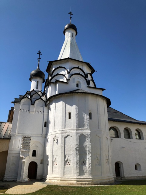 Después del desayuno nos recogieron para iniciar las visitas guiadas, la primera visita fue el Kremlin de Suzdal, Patrimonio de la Humanidad por la Unesco, formando parte del conjunto de Monumentos blancos de Vladimir y Suzdal, con su iglesia de madera en su jardín.