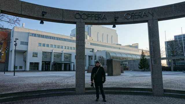 Desde el Café Regatta nos dirigimos hacia la ópera Nacional de Finlandia, que está a un kilómetro aproximadamente, situada frente al lago Töölönlahti, el edificio no es especialmente bonito,  pero las vistas del lago helado valen la pena, es curioso como los colegios llevan a los escolares más pequeños a pasear por el parque con el frío que hace, todos ataviados con chalecos reflectantes para que no se les extravíen.