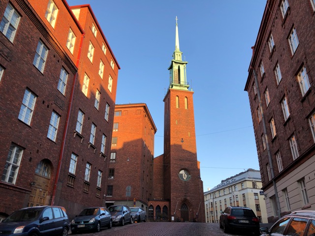 De regreso al centro, visitamos la capilla de madera, o capilla del silencio, de nombre Kamppi, construida en el año 2011, un edificio sin ventanas de formas redondeadas, con claraboyas para iluminar su interior, la entrada es gratuita, pero está prohibido hacer fotografías y vídeo.