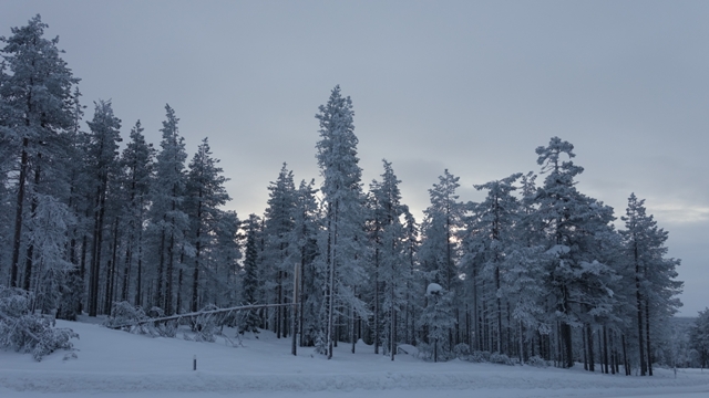 Salimos de Levi a las 9:45h cuando empezaba a clarear, nuestro primer destino era la población de  Sodankylä, durante el trayecto de unos 105 kilómetros nos encantaron los paisajes, la duración aproximada fue de una hora y media , constantemente nos daba la sensación de estar dentro de una postal navideña.