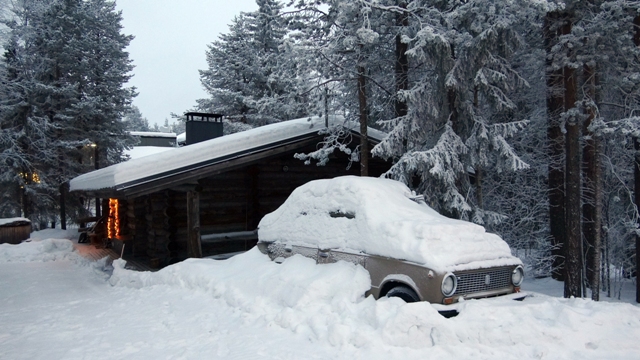 De Levi a Saariselka decidimos hacerlo en coche de alquiler, para tener un poco más de libertad, así poder visitar algunos pueblecitos por el camino, según los consejos que leímos en el blog de Chavetas del cual hemos cogido bastantes ideas, reservamos un VW golf o similar en Europcar, con sus correspondientes neumáticos de clavos como es obligatorio en Finlandia a partir del  1 de Diciembre.