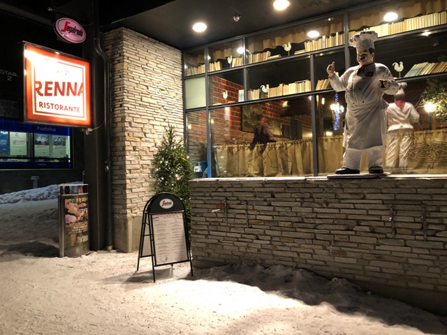 Para la cena fuimos al centro de Saariselkä,  y de paso comprar algunas cosas en el supermercado «K», paseamos por la población que no tiene demasiado interés y cenamos en un restaurante llamado Rakka en la calle Saariseläntie 7, un riquísimo pollo asado para variar un poco de menús anteriores.