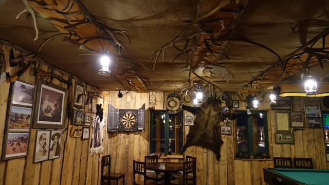 Llegaba la hora de comer, ya que en la zona tampoco es que hayan muchas opciones, entramos en un local llamado Wanha  Waskoolimies, parecía sacado de una película del oeste americano,  madera por todos lados, incluso pieles de oso y animales disecados que daban un poco de mal rollo, pero que según parece a los finlandeses les hacen bastante gracia, ya que en las tiendas de recuerdos los venden también.