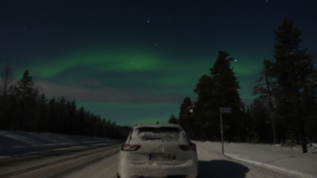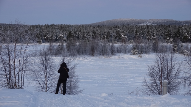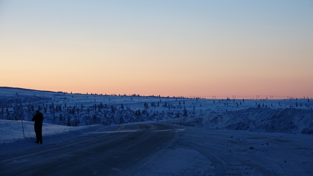 Pero no hubo suerte, fuimos hasta Ivalo y volvimos, pero nada de nada, el coche marcaba -23 grados, lo curioso es que si no hace aire, al salir del coche no se nota el frío, pero cuando llevas unos minutos sin guantes para filmar o hacer una foto te empiezan a doler las manos cada vez más.