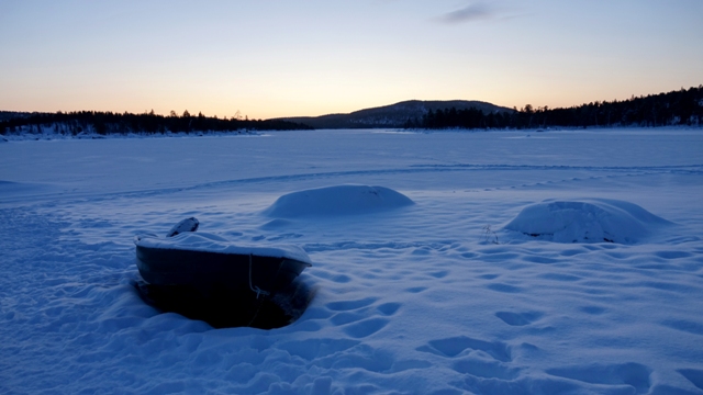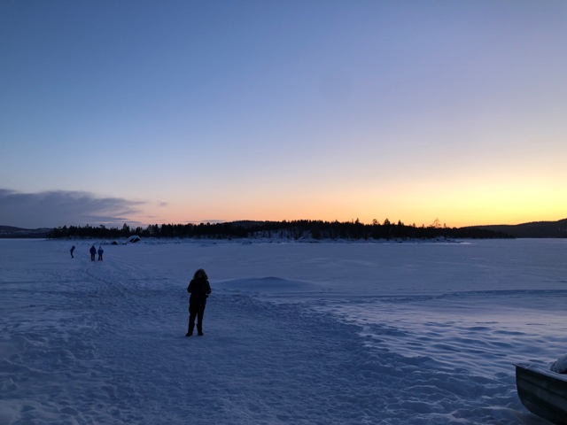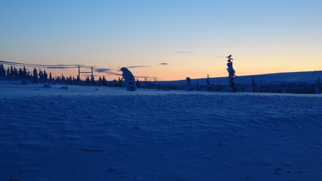 Último día completo que nos quedaba en Finlandia, seguía estando despejado menos mal, pudimos disfrutar de la luz del Kaamos en todo su esplendor de un azul intenso, con tonos dorados en el horizonte.
