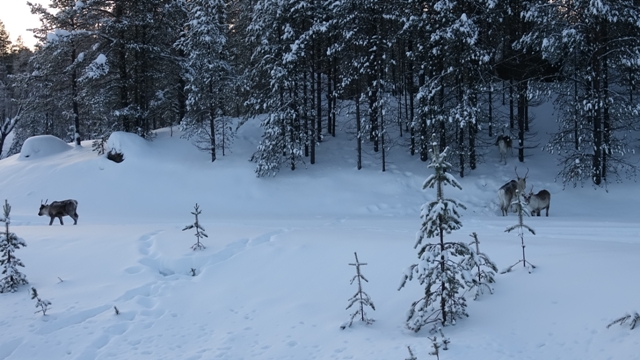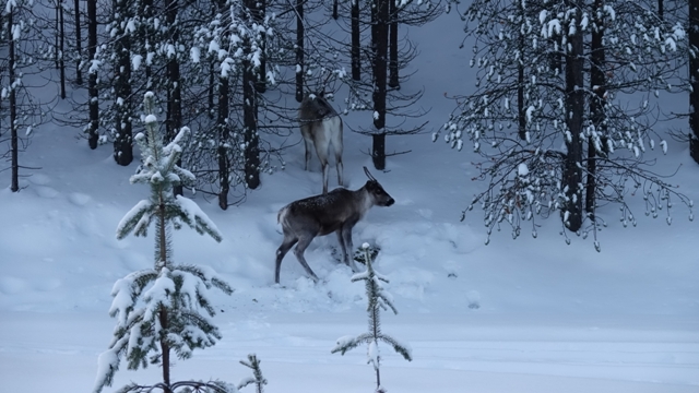 Cuando estábamos en las cercanías del lago Inari volvimos a encontrarnos con algunos grupos de renos salvajes a los lados de la carretera.