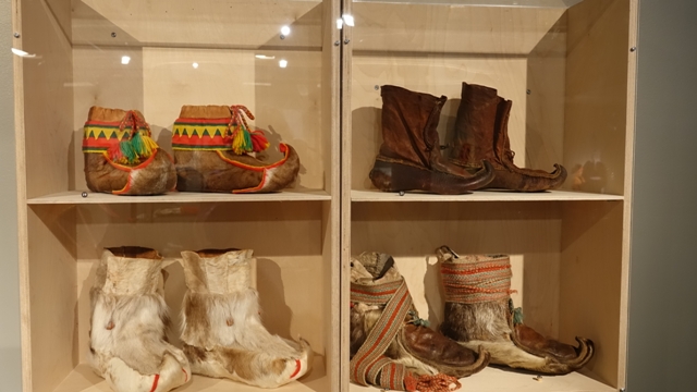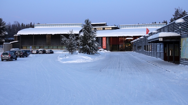 Una vez en Inari iniciamos las visitas con el edificio del parlamento Sami, llamado Sajos, en él hay un centro cultural con una pequeña exposición de fotografías y artículos tradicionales del pueblo Sami, el parlamento se sitúa en una sala central construida de madera de forma redondeada.