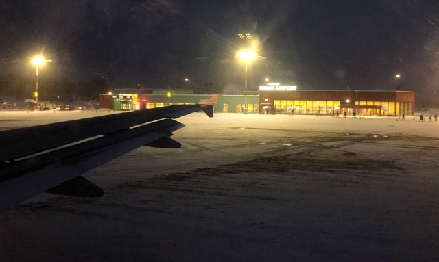 Nuestro vuelo con Norwegian salió puntual, siempre es de agradecer, en estos vuelos low cost lo único que te sirven es una bebida, así que hay dos opciones, traerte un bocata o comprar los que te ofrece la compañía, el trayecto tuvo una duración de 3:45 horas de Barcelona hasta Helsinki, llegamos puntualmente a las 16:30 hora de Finlandia, en la aproximación al aeropuerto de Helsinki-Vantaa pudimos ver por la ventanilla como iba anocheciendo, una vez recogimos la maletas al salir ya era de noche.