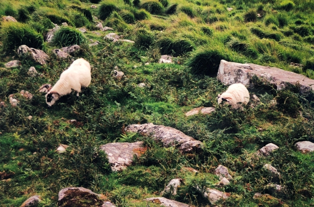 Seguimos el recorrido del Anillo de Kerry, disfrutando de paisajes maravillosos, bajo el cielo nublado de Irlanda, prados, lagos y cientos de ovejas, fueron las imágenes más constantes en la ruta, nos encontramos con algunas señales que indicaban zonas de cruce de Leprechaun, unos duendes, que según la leyenda, habitan en Irlanda que están siempre buscando una olla llena de monedas de oro donde termina el arco iris y haciendo travesuras.