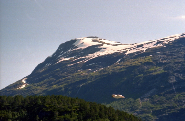 Una vez desembarcamos pusimos rumbo a Olden para buscar un alojamiento en las cercanías del glaciar, durante el trayecto pasamos por Blåfjellbrakka donde encontramos bastante nieve, no tuvimos más remedio que parar para hacer algunas fotos.
