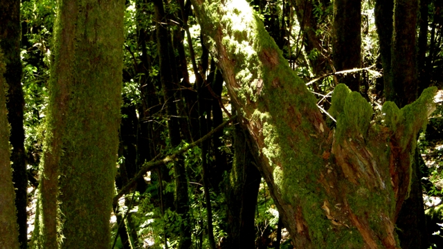 En la ruta hicimos varias paradas para fotografiar el bosque, con sus troncos llenos de musgo y lianas de líquenes colgando de las ramas, creando una sensación parecida a los bosques que salen en las películas tenebrosas.