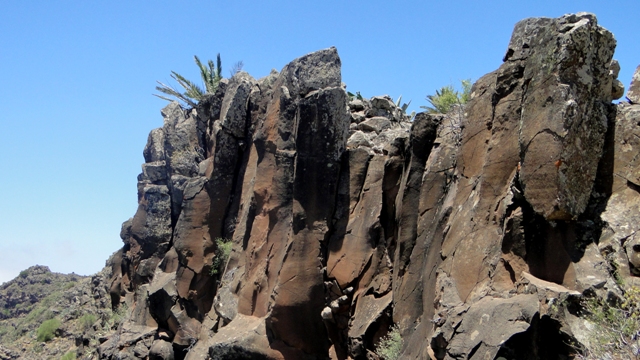 Tras la comida, hicimos unas cuantas fotos y vídeo más desde el mirador al valle gran rey y emprendimos el camino de regreso, realizando algunas paradas durante el trayecto dentro del parque y en los varios miradores que nos íbamos encontrando, a destacar los inmensos conos de lava que se pueden ver desde el mirador del Morro de Agando, seguimos descendiendo encontrándonos el mirador Degollada de Peraza con vistas a Vegaipala, Jerduñe y el Cabrito en la vertiente del sur y del Barranco de La Laja por el norte.