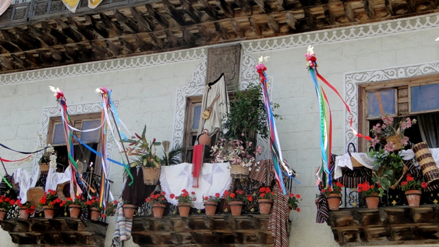 Recorrimos las calles donde habian confeccionadas variadas alfombras florales, visitando de paso, los edificios emblemáticos que encontrábamos por el camino, como la ermita de la Candelaria del lomo, la iglesia de Nuestra señora de la Concepción, el hospital de la Santísima Trinidad, la Casa de los balcones uno de los edificios más fotografiados de La Orotava, fue construida en al año 1632, frente a ella se encuentra la Casa Molina, como había llegado la hora de almorzar buscamos un restaurante cercano y de paso descansar un poco.