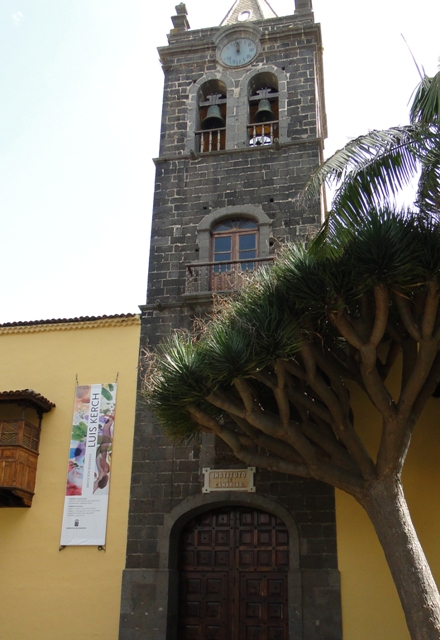 Con los ánimos renovados seguimos las visitas con el Ayuntamiento de la Orotava, que supongo para proteger de la lluvia la inmensa alfombra de arenas de colorees y flores confeccionada frente al edificio, estaba cubierto de una carpa gigante tapándonos parcialmente la vista de la fachada.
