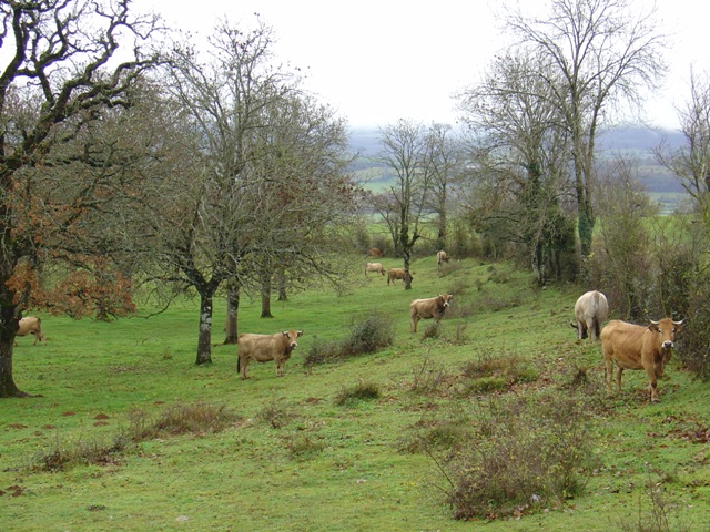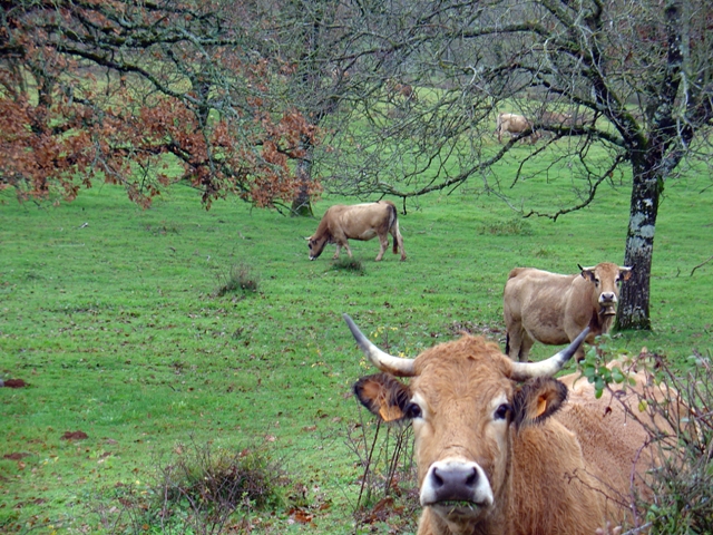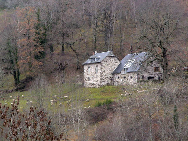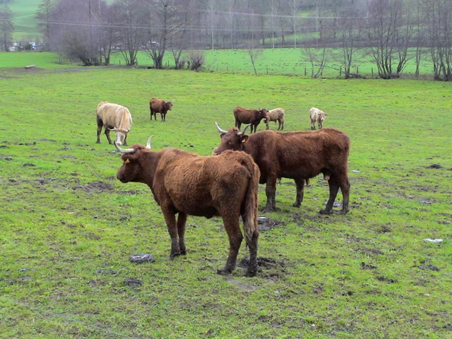 Durante nuestro recorrido en coche nos acercamos a la zona de las Gorges de La Jordanne, cerca del municipio de Saint Cirgues de Jordanne, un precioso paraje de color verde intenso atravesado por el río del mismo nombre, con vacas de pelo largo observándonos como hacíamos decenas de fotografías mientras pastaban tranquilamente.