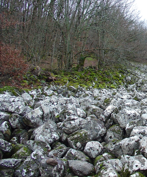 A pocos kilómetros, tras entrar en el parque natural, encontramos a pie de carretera coladas de lava que nos quieren recordar que toda esta zona fue antaño de una gran actividad volcánica, con 80 volcanes alineados en la llamada cadena de los Puys, las zonas de lava están correctamente indicadas con letreros donde reza «La Coulée de Lave«.